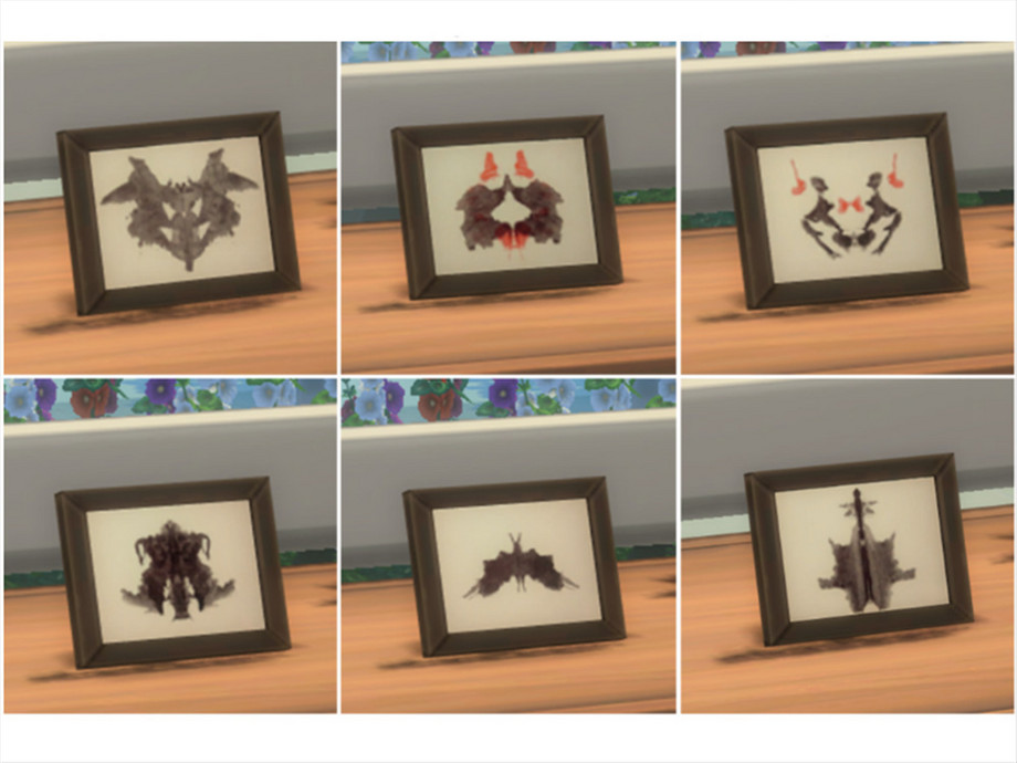 The 10 inkblots in the Rorschach inblot test, in a nice dark brown frame.