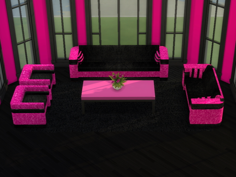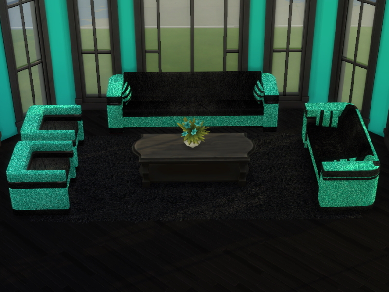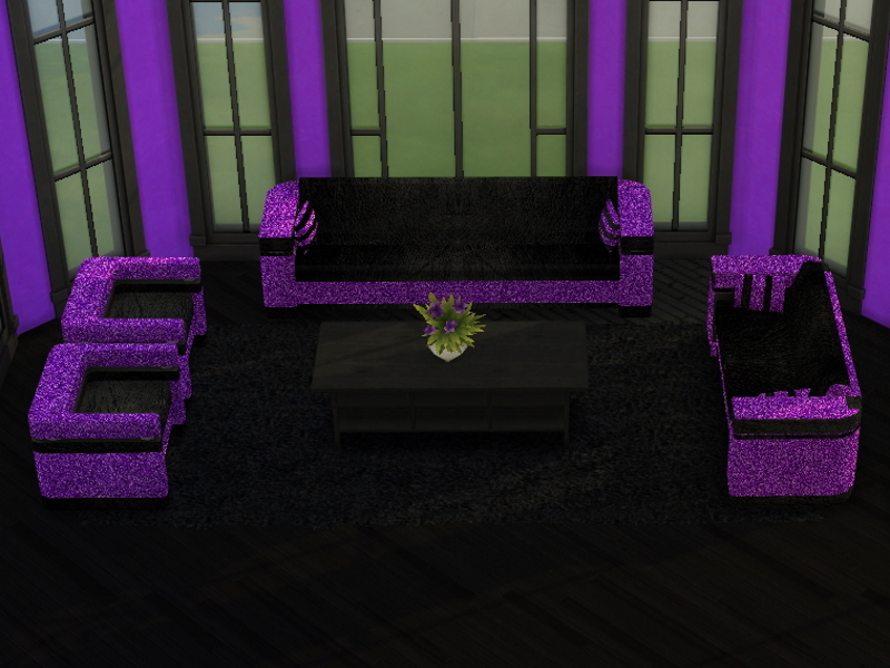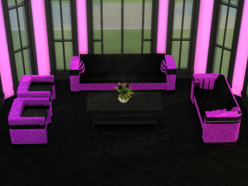 The All That Glitters Living Room Set Part 2 comprises of sofa, loveseat and living chair, black leather with a glittery trim which comes in 5 colours: azure, hot pink, magenta, purple and turquoise.