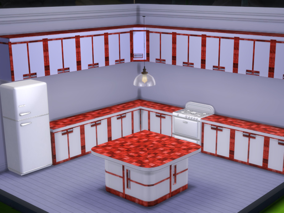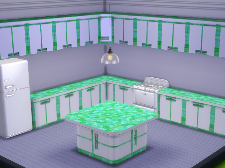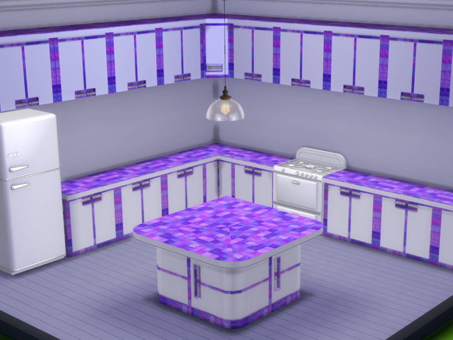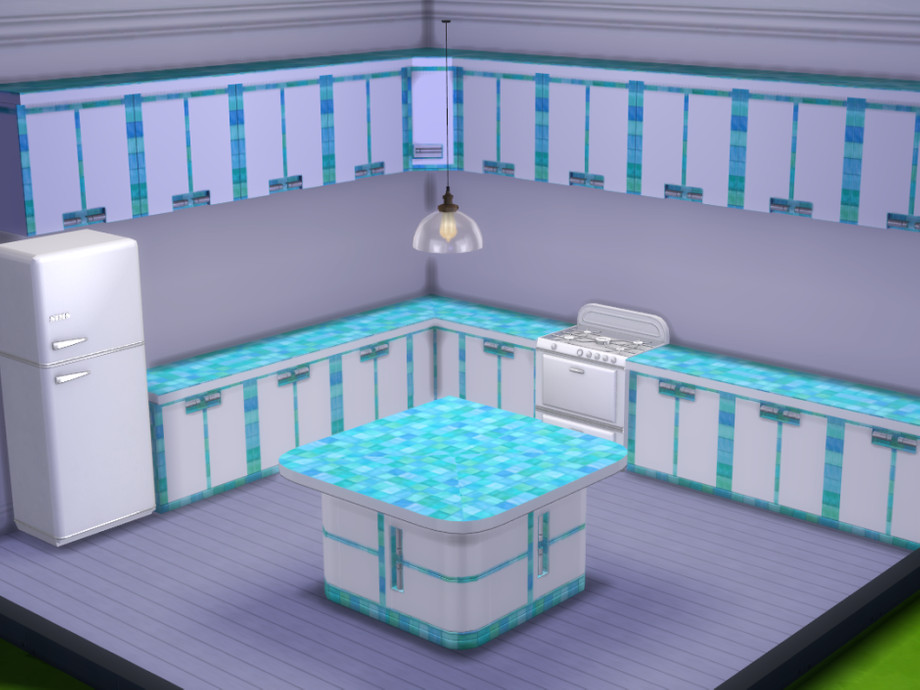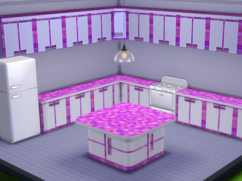 Add a touch of colour to your Sim's kitchen with this pristine white set trimmed with glass tiles in a choice of blue, pink, purple, red, turquoise or green. Enjoy :-)