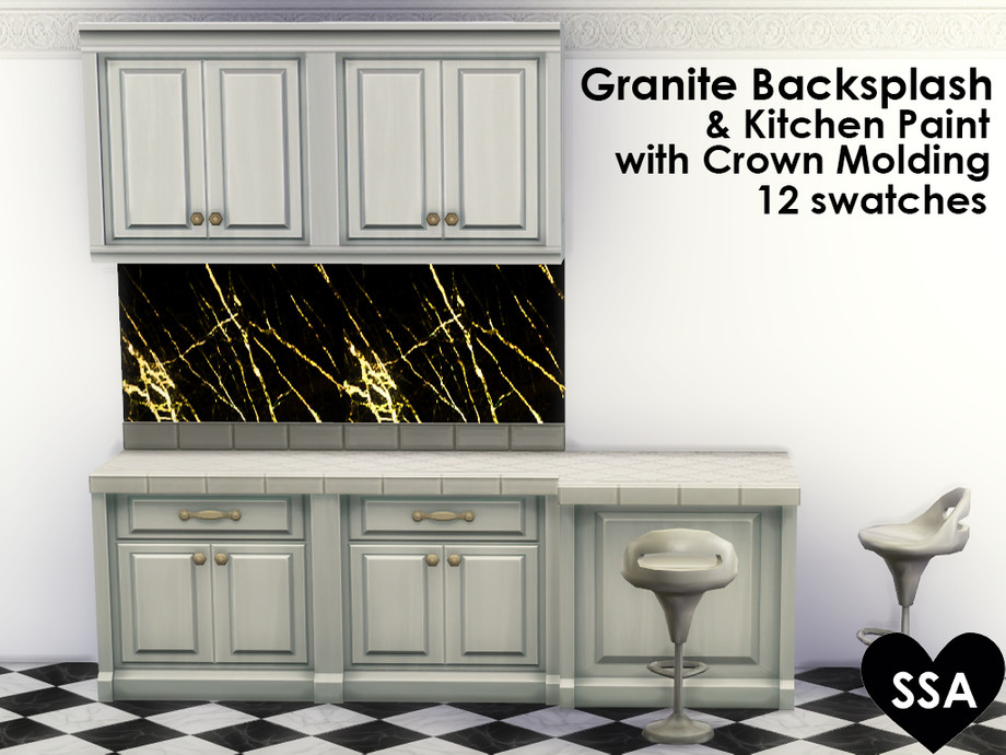 12 swatches featuring a black and gold granite backsplash with 12 matching swatches of paint. I hope you enjoy :)