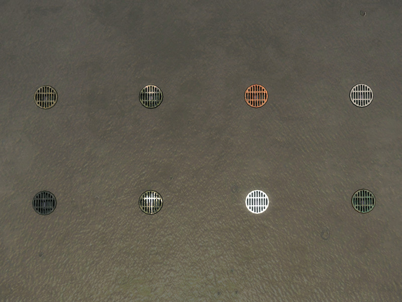 Decorative drain cover - repeat buy enabled. Can be found under decor > rugs. The drains behave like rugs, but can be overlapped with other objects and won't impede Sims.