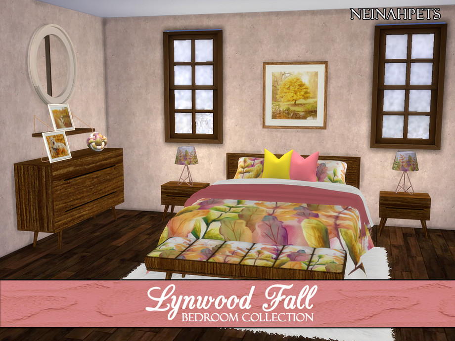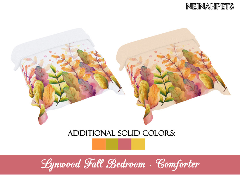 A rustic wood bedroom set recolor and retexture with a watercolor motif in white and cream with 4 additional fall solid colors to mix and match.