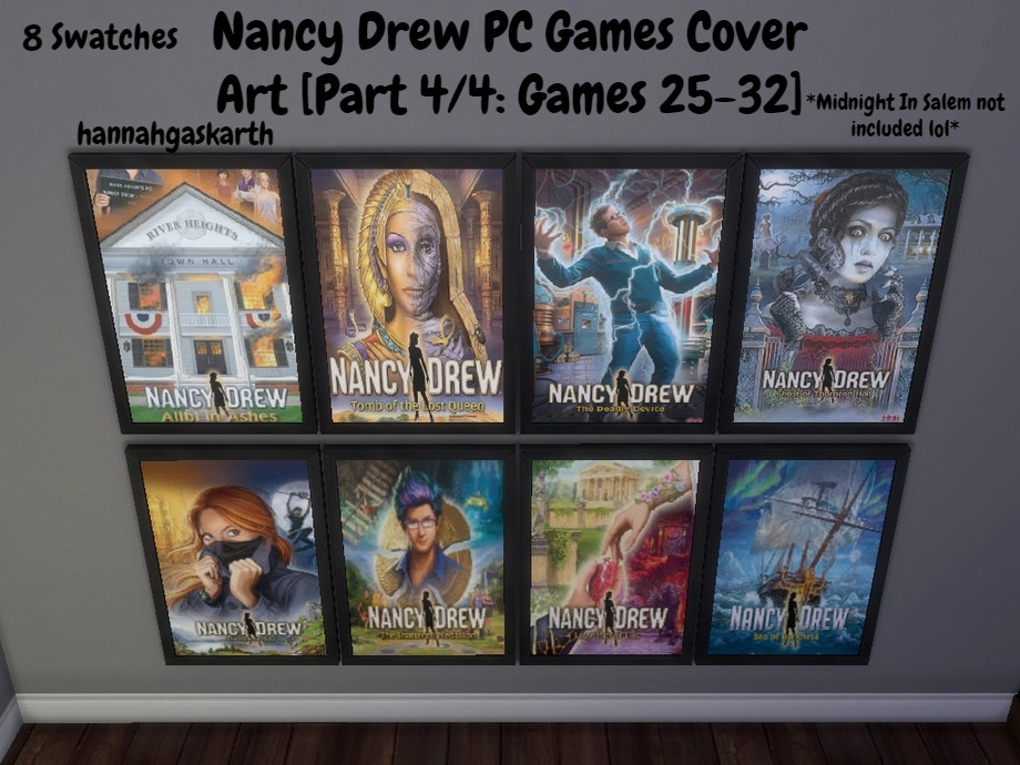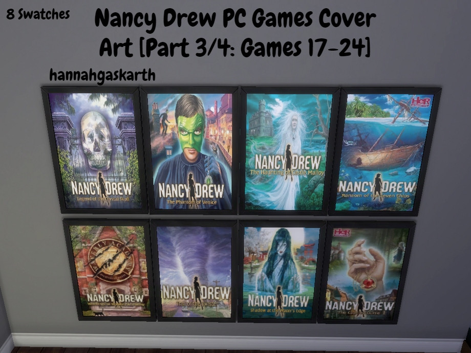A set of frames from the Nancy Drew series. Simoleon cost for all is set to 120. Midnight in Salem & SCK Remastered not included.