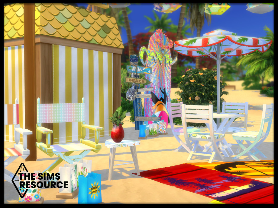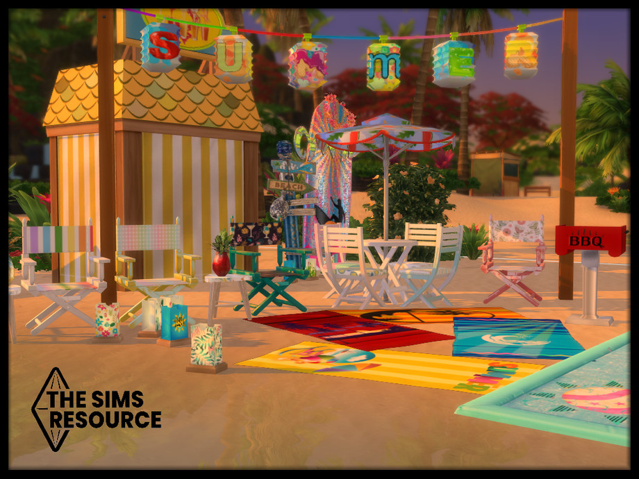 Its Summertime! Hit the beach, park or garden and enjoy living it up outdoors in bright, fruity, floral, pastel and tropical colors for your Sims.