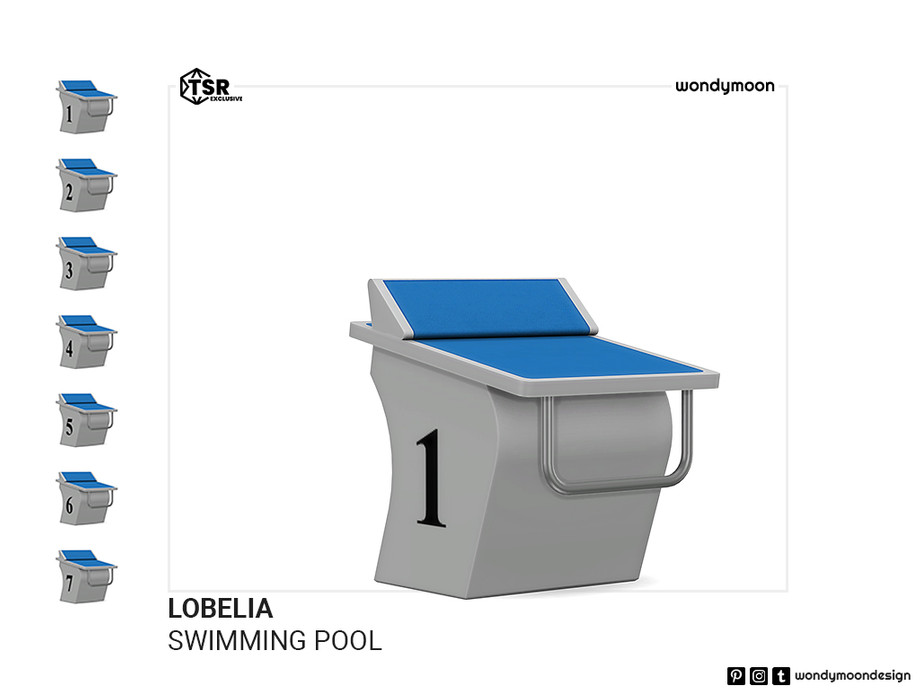 Let your Sims enjoy swimming with Lobelia olympic swimming pool equipments and decorations. Create a community lot or make a big pool on your garden!