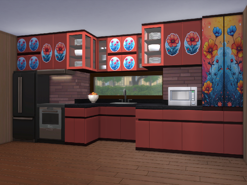 counters and cupboards with a flora designs