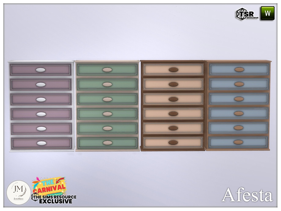 Step into the softness and magic of the carnival with Afesta, a children's bedroom inspired by the enchanting world of the circus.With playful shapes and charming details, this two part set comes in four wood and color variations, allowing you to create a unique atmosphere both dreamy and whimsical. Transform your little Sims space into a magical big top