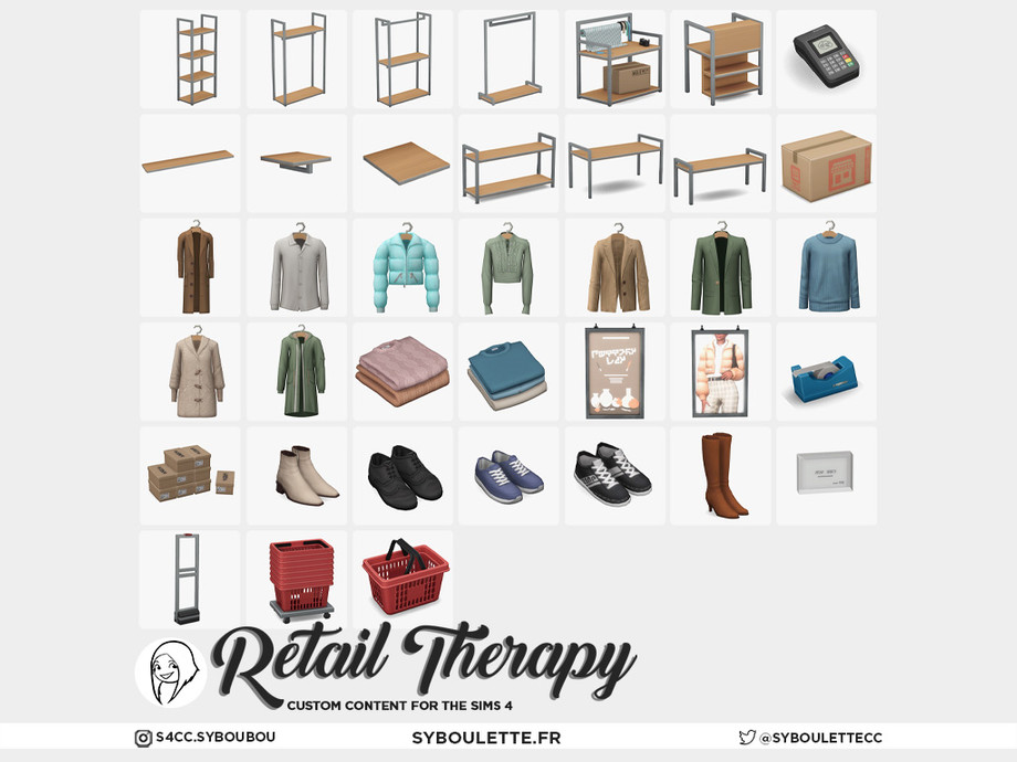 Retail Therapy is the ultimate cc set for designing the perfect shopping experience! Originally crafted around clothing stores, this set took on a new life when Business and Hobbies was announced, fitting the new DLC purely by coincidence!