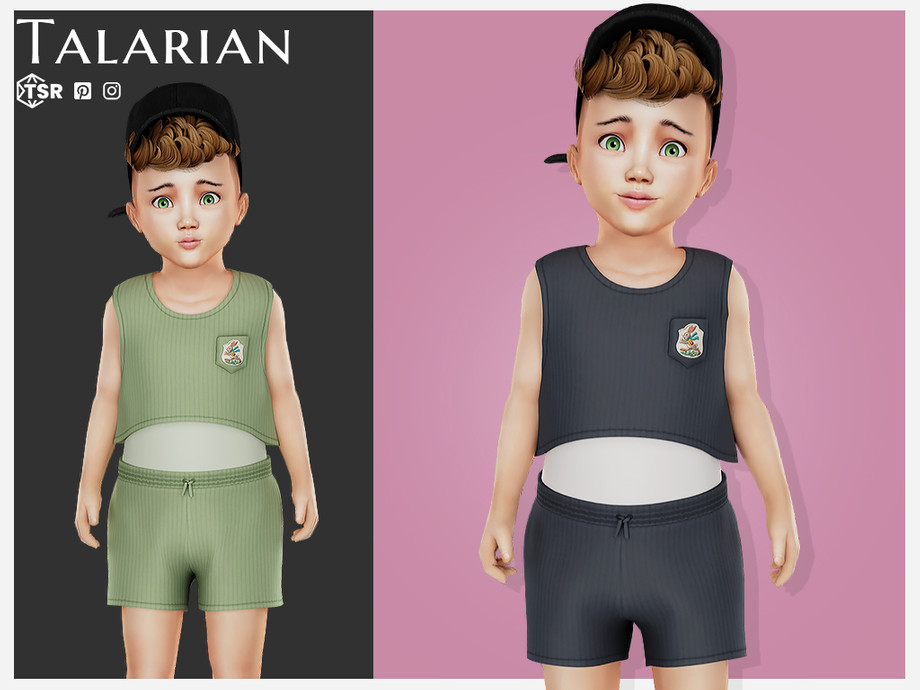 Sims 4 — Talarian_Omar_Shorts_TSR[Todd].package by talarian — Toddler sleeveless cropped athletic top with patch detail