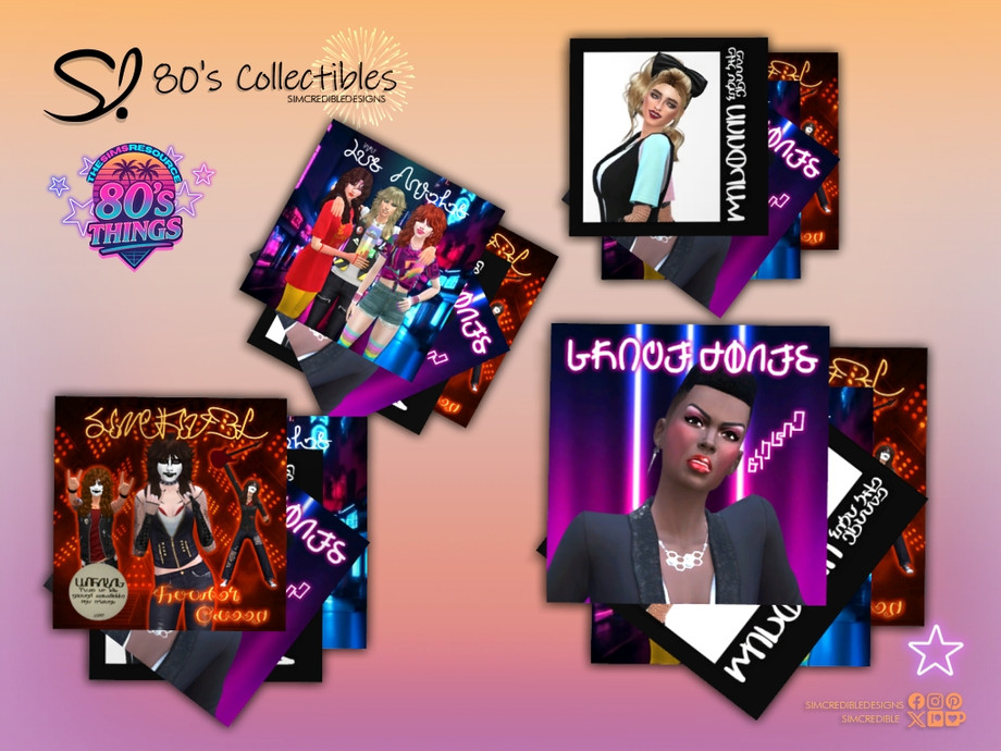 Colors, fun, great music, amazing movies... it's so 80s! And since we didn't have the internet back then, all we could do was buy and collect albums, cassette tapes, posters, game cartridges and VHS movies. We hope your Sims enjoy having these classics in their lives too.