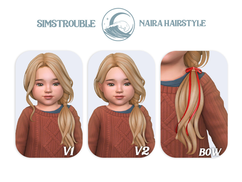 A long, wavy hairstyle wrapped on the left side with a (removable) bow.