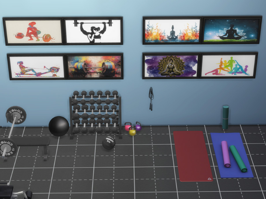 Featuring bold colors and dynamic poses, these paintings are perfect for home gyms, yoga rooms, garages, and Sims who swear this is the week they finally commit.
