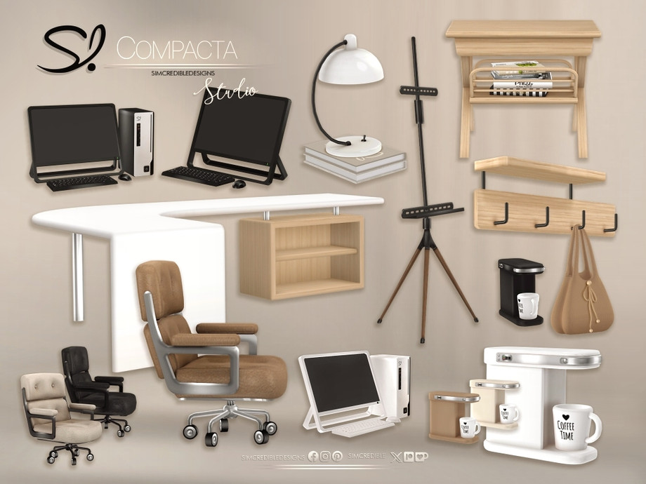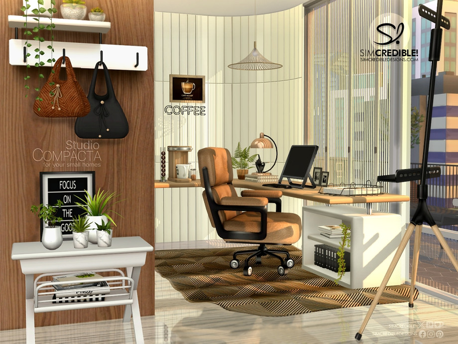 Designed for small spaces and big ideas, the Compacta Series starts today with the Study Office, which brings modern elegance and smart functionality for your Sims spaces. Perfect for small apartments and compact homes!