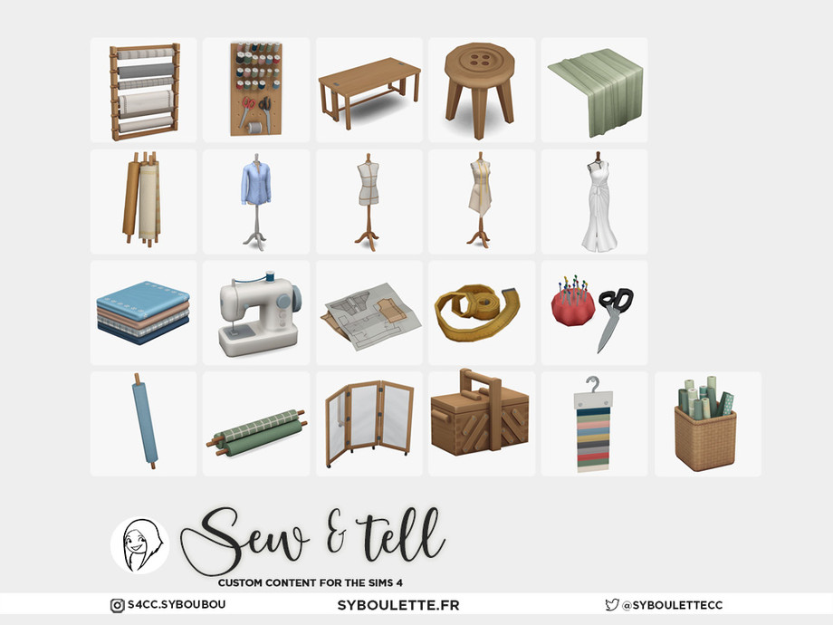 Sew & Tell is a cc set made to bring the magic of a sewing room into your Sims homes. While the game doesnt offer real sewing gameplay, this collection lets you tell the story anyway, from amateur hobbyists to full time fashion dreamers.