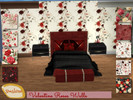 Sims 4 — Valentine Roses Walls by Sim_shine — Wallpaper with varied rose patterns without trim, brown wood, and white