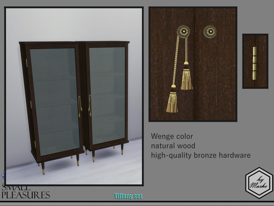A cabinet or sideboard for dishes and booksMy mom has a similar one: with bronze handles, made of natural wood.