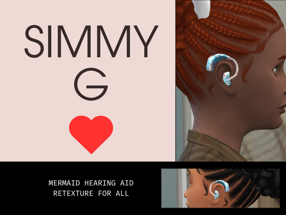 A mermaid-themed recolour of the base game hearing aids, going from toddler all the way through to elder. Sadly, there are no hearing aids for infants :(