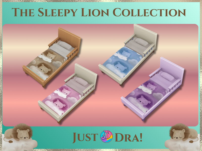 Bring a soft and dreamy feel to your Sims' homes with the Sleepy Lion Nursery Collection. Designed around a peaceful sleepy lion theme, this set features cozy clouds, gentle moons, and calming colors to create the perfect nursery space.