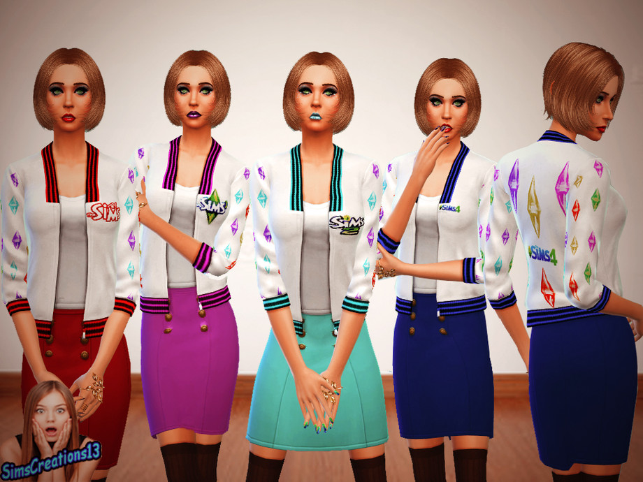 This is a simple skirt that goes with my sims series jacket, it comes in 3 colours, blue, pink and green. The red skirt is in the game already. Get Together needed.