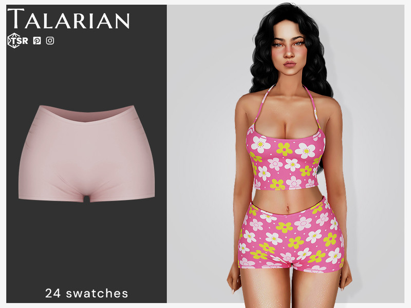 Comfy fitted shorts with a soft waistband and slightly curved hem, ideal for loungewear or casual summer looks. Comes in 24 swatches including 10 floral prints and 14 solids, matching perfectly with the crop top