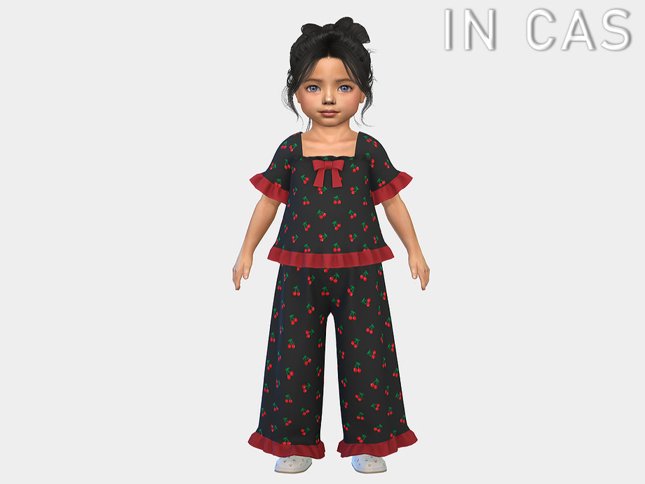 Sims 4 — Ember Pants by talarian — Wide-leg pants featuring a cheerful cherry print, elastic waistband, and ruffle hem