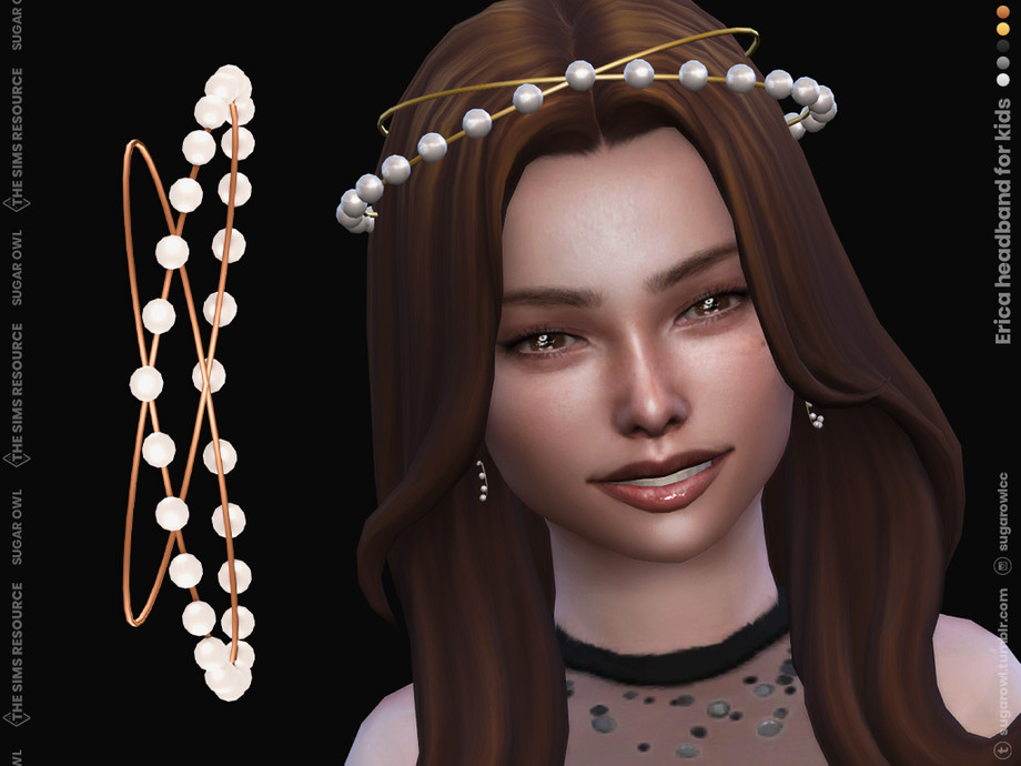 Metal halo headband with pearls for children, come in five swatches: gold, silver, and bronze.