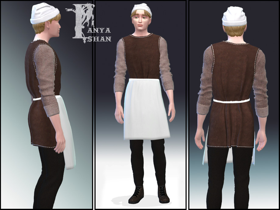 This set replaces the standard male uniform of the maid. You can find recolor of standard shoes in the female version of the maid uniform