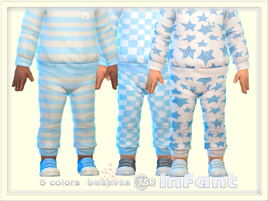 Delicate infant pants for boys only in 5 color options. Installed separately, suitable for the basic game.