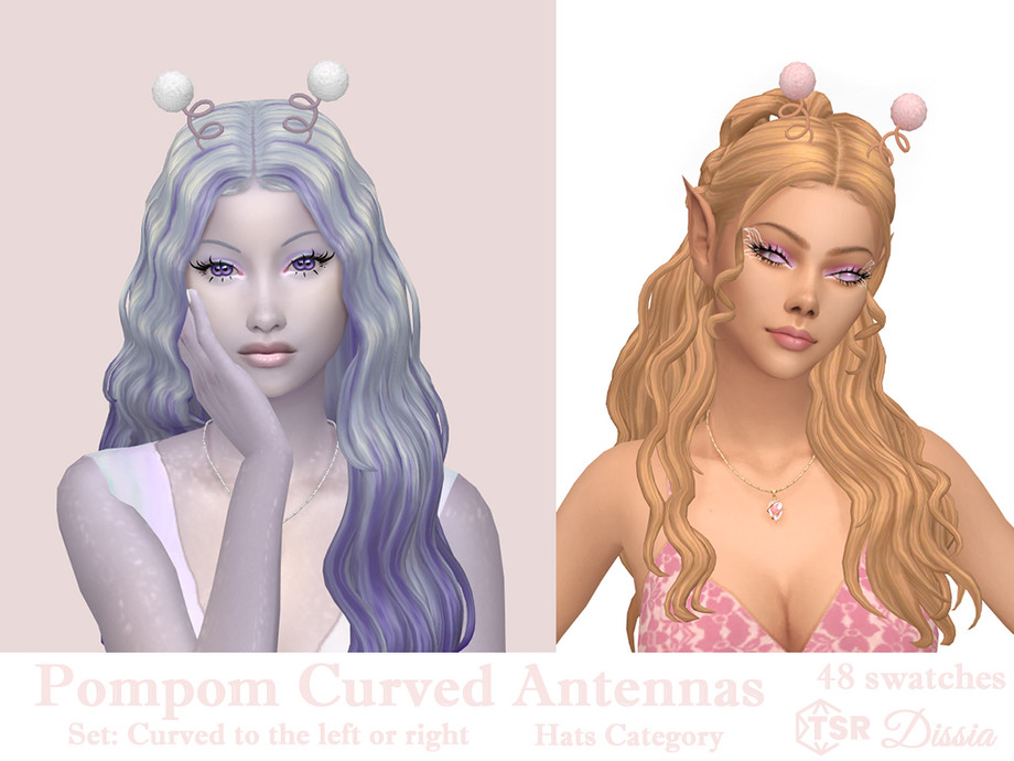 Alien antenna curved to the right (v1) or left (v2) with pom poms at the end
