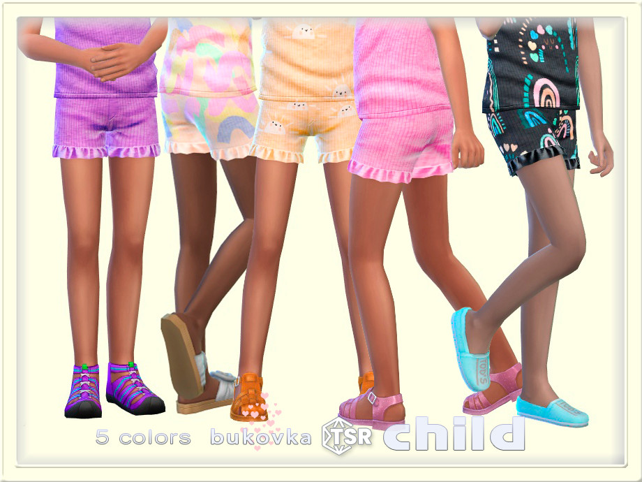 Cute shorts for kids, girls only, in 5 color options. Can be installed independently, all cards are modified, suitable for the basic game.