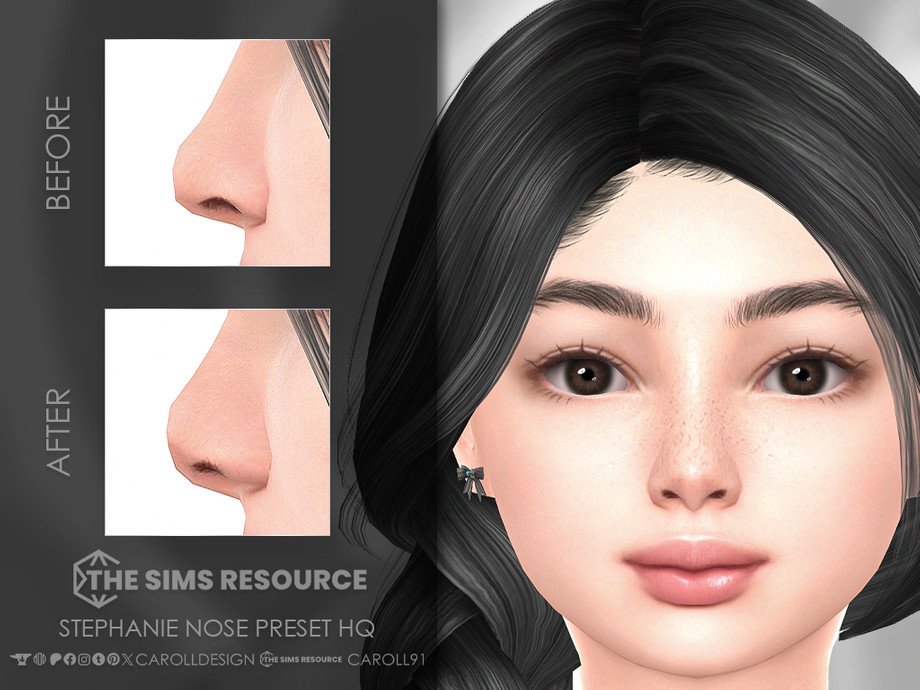 A small nose preset for both female and male Sims. Preset is suited for Infants - Children and all occults. HQ mod compatible.