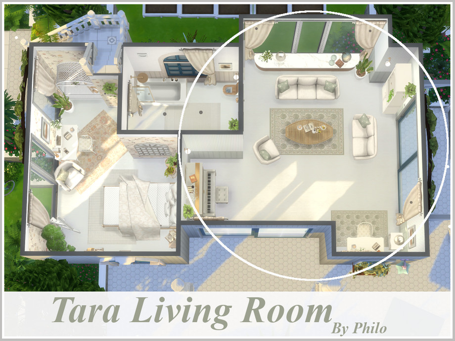 This room was built in Tara Beach House which you can download as an empty shell. It's located on the ground floor as shown on the last screenshot.