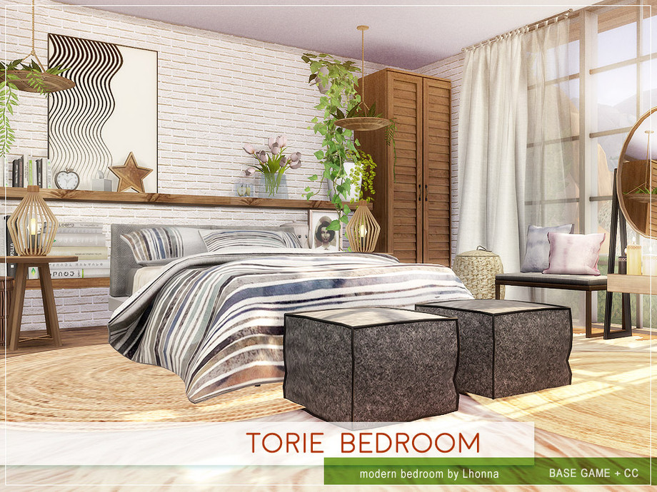 Modern, base game bedroom. The room is furnished, tested, and ready to play.