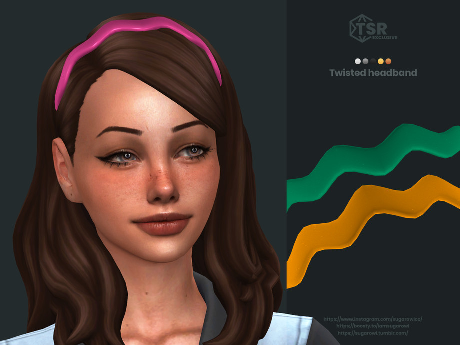 Maxis Match twisted headband for male and female sims. 10 swatches. BG and HQ compatible.
