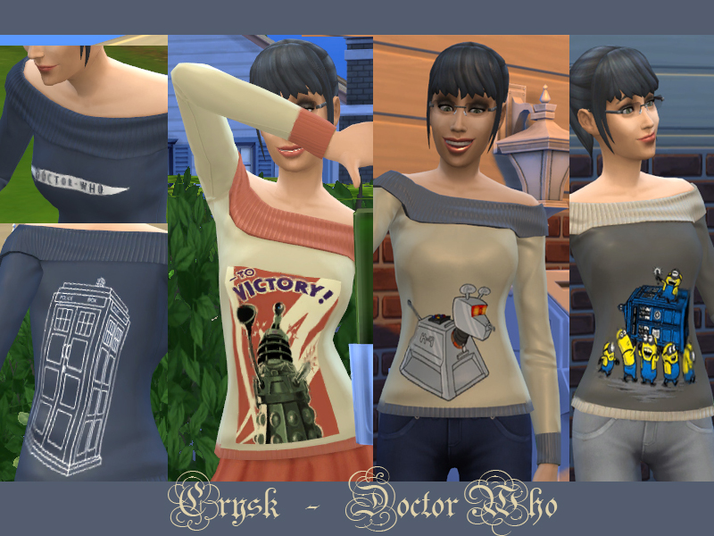- "Doctor Who Logo" on the front and "TARDIS sketch" on the back
