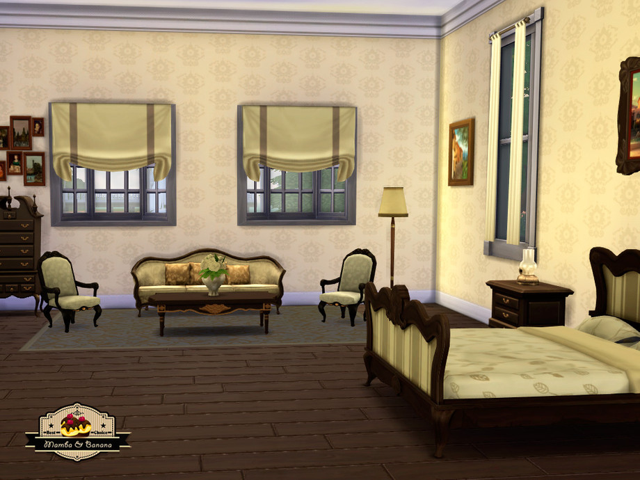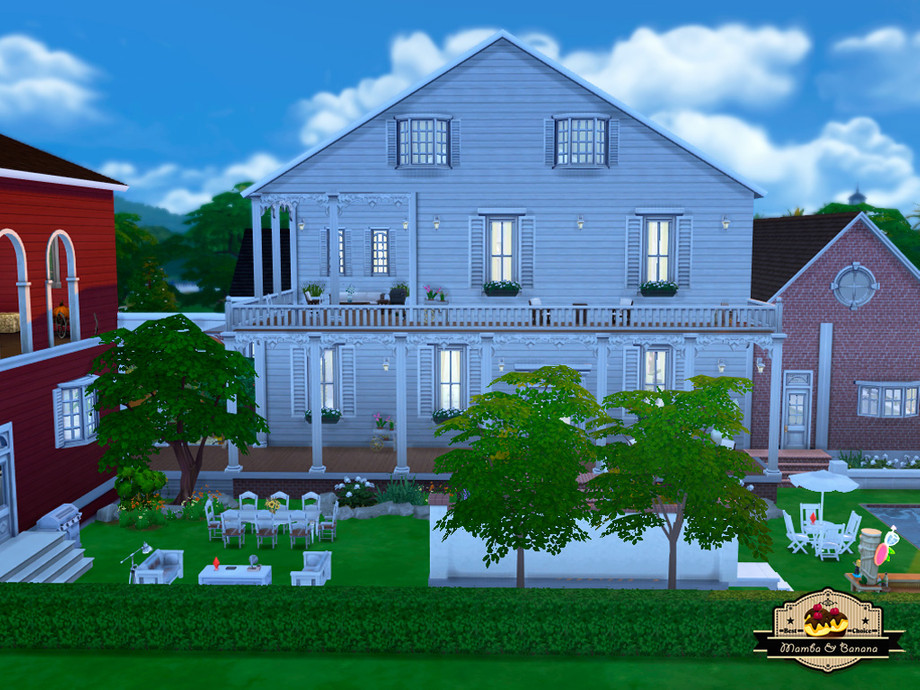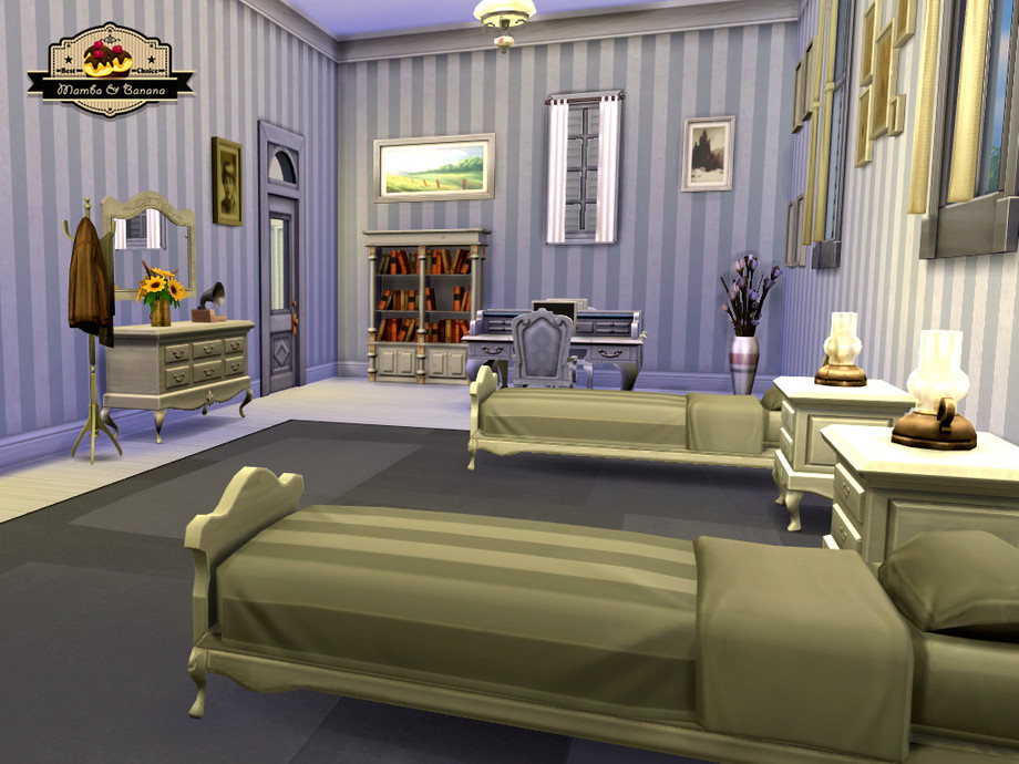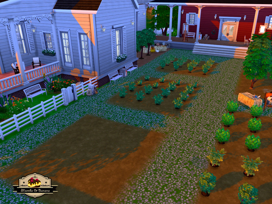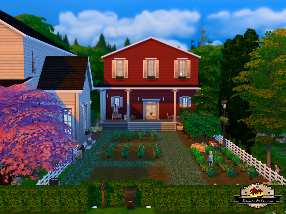 This is a perfect house!! (but it is very expensive xD) for your sims. The house have four bedrooms, one bedroom for baby, kitchen, wide living room, 3 bathroom, one study and one farm in separate building with very elements for all skills.