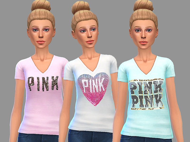 My first ever cc, a set of three Victoria's Secret v-necks with a little bit of bling here and there.