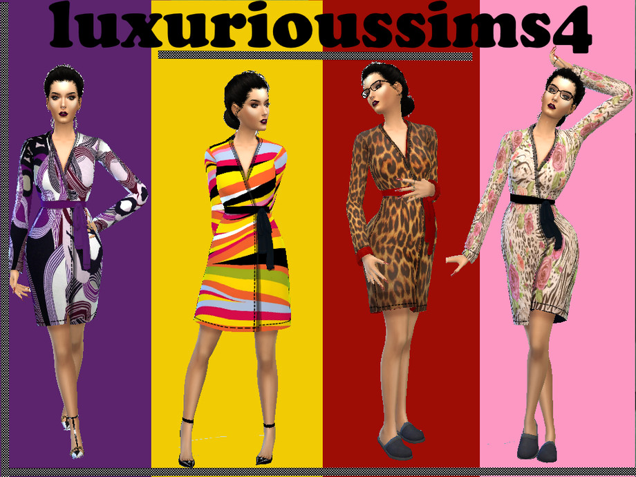 Take your Sims from day straight to night where this simple item can go from a wrap dress to a robe. 4 different designs