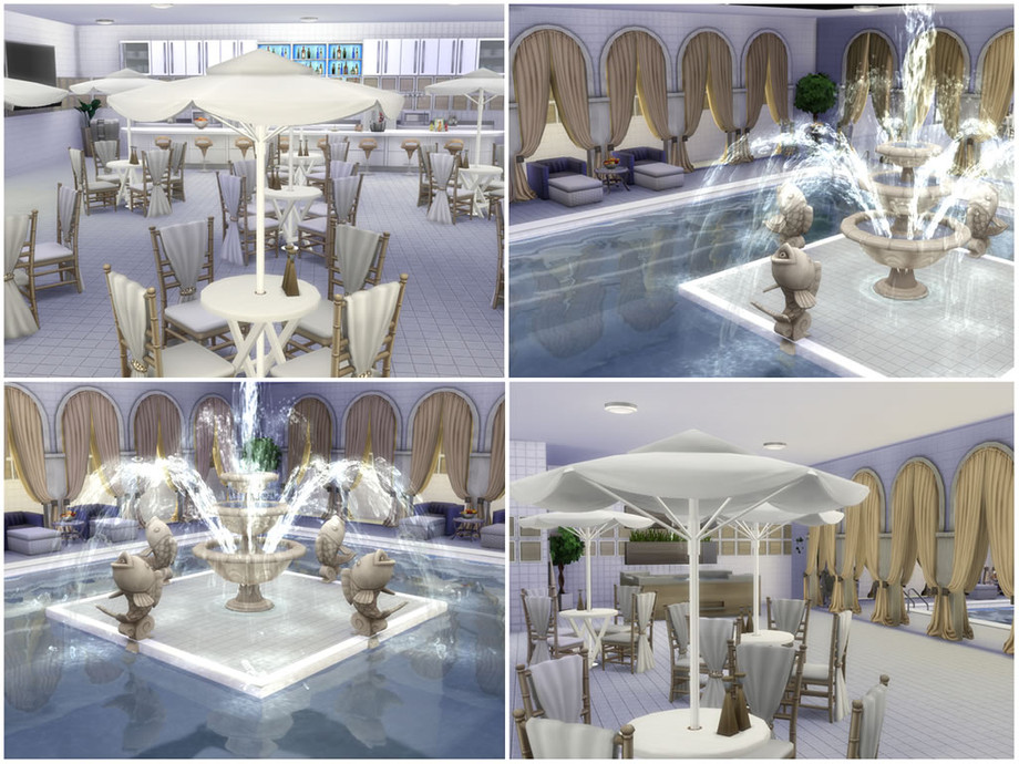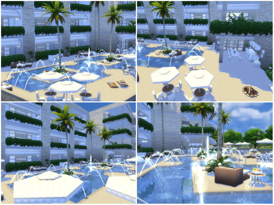 Newcrest Resort | Spa-Hotel offers everything your Sims need to have fun, gain skills and relax, all in one gorgeous and modern place beautifully decorated in shades of beige and white.
