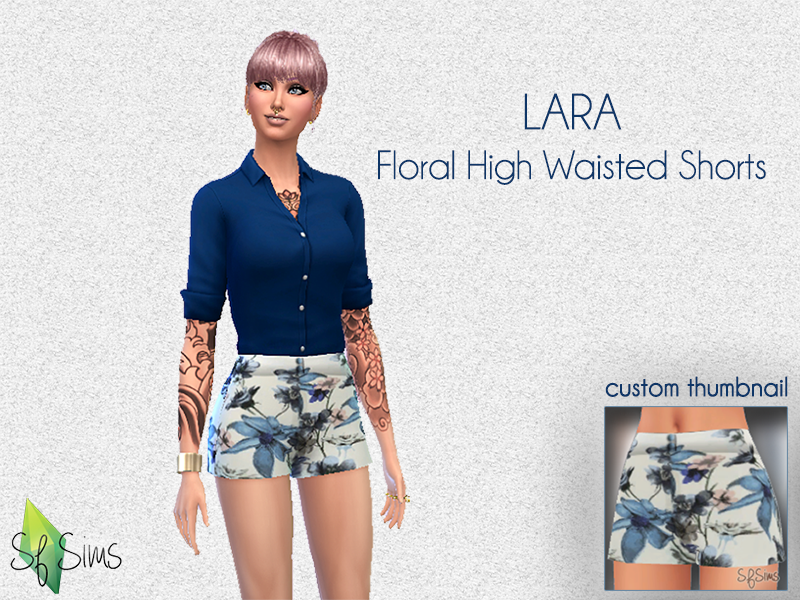 'Lara' Floral print high waisted shorts for Young Adult and Adult female Sims