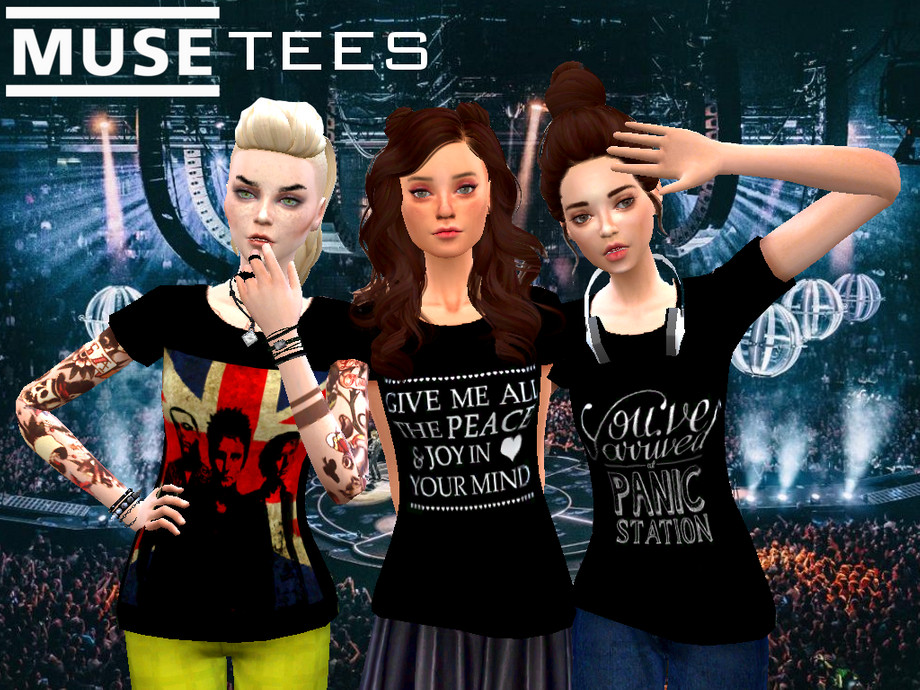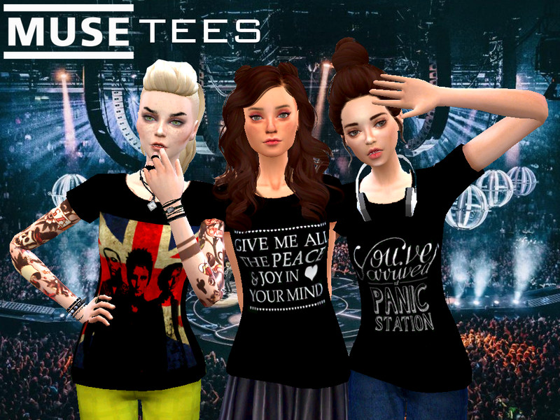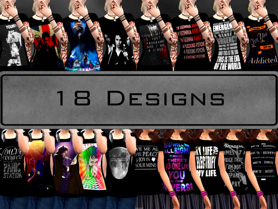 18 black tees with different designs based on the band Muse and their songs.