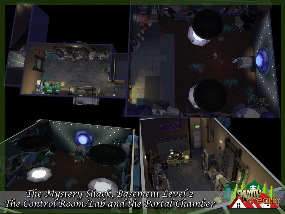 I turned the portal room/second basement level around so it would match up with Dipper's falling into Ford's control room/lab from the back porch area in "Dungeons, Dungeons and More Dungeons", thus creating a secret passage from the 'stairwell/elevator access' area. Most of these adjustments were for aesthetic reasons.