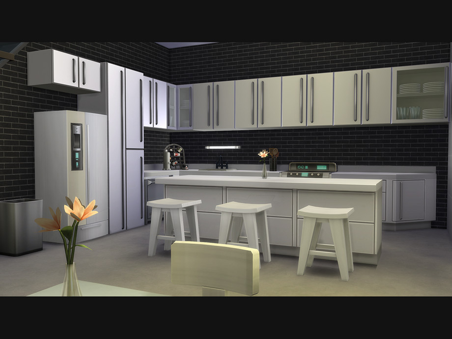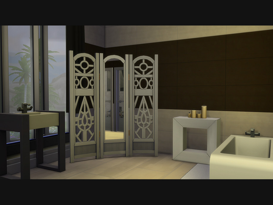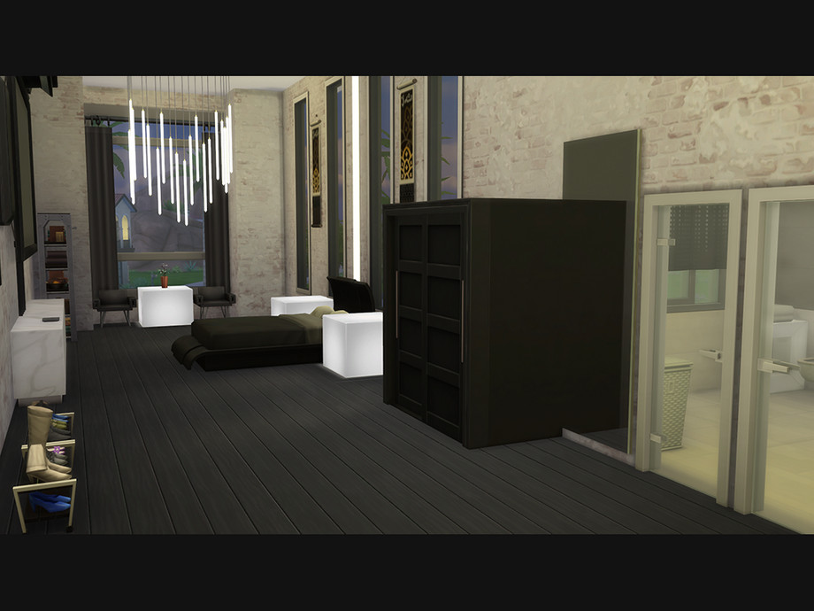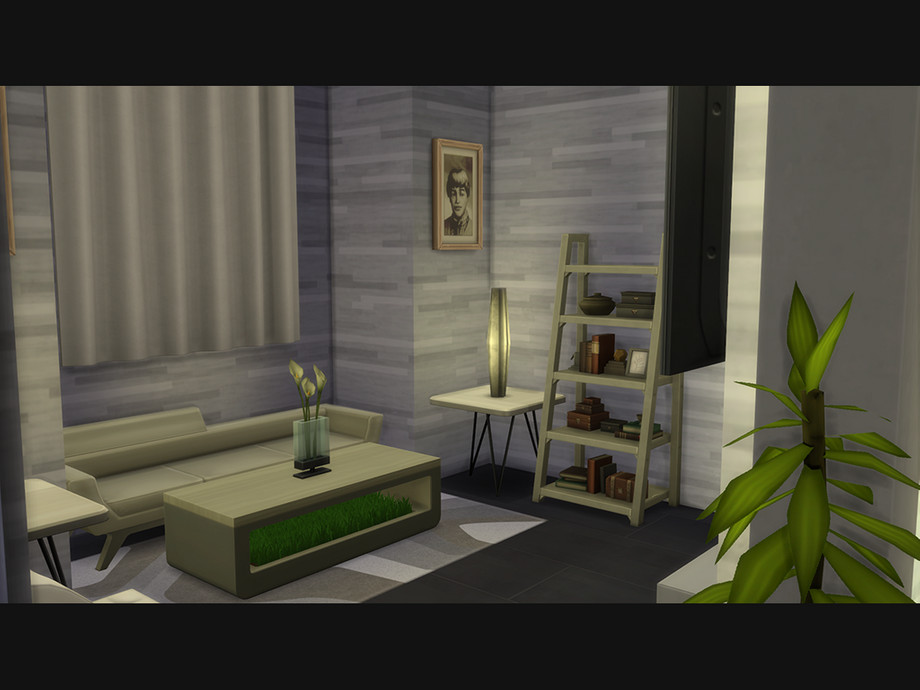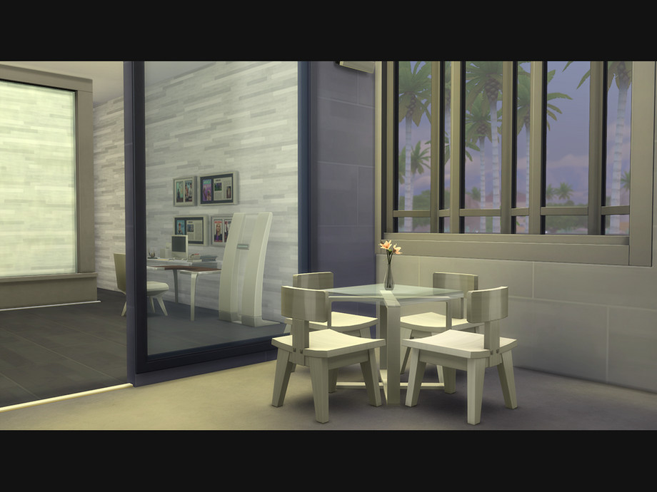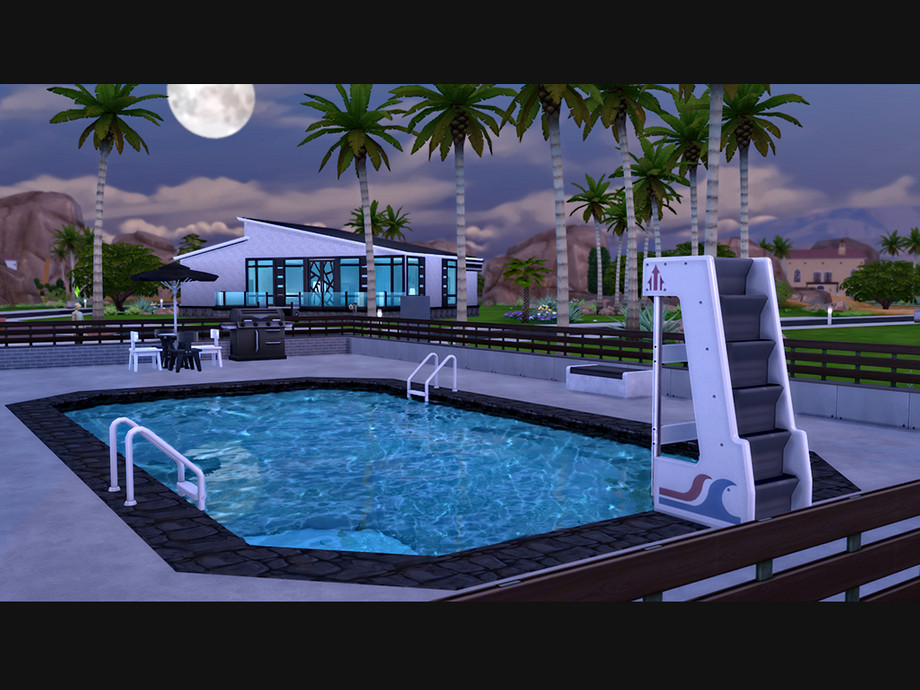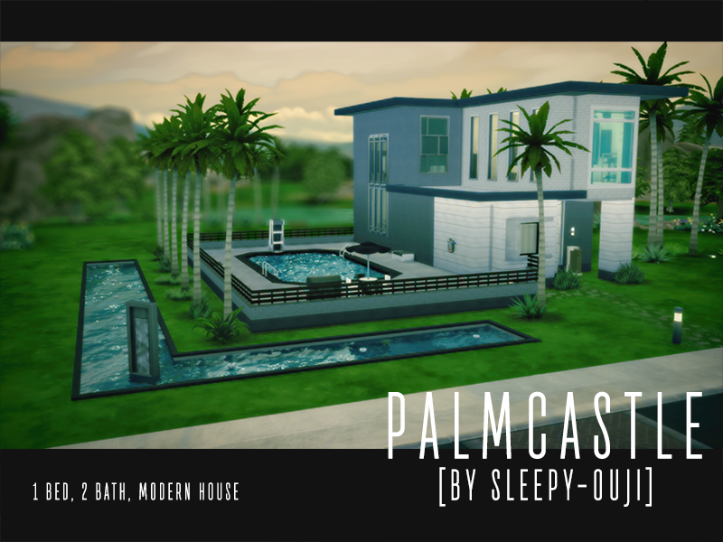 This is a simple modern house for a sim and their lover. The climate may be hot, but at PalmCastle the grass is forever healthy and green, and the pool is sparkling bright in waiting to refresh you; in the chilly nights, the house is warm and inviting, offering neutral black and white decor and warm light-coloured woods.