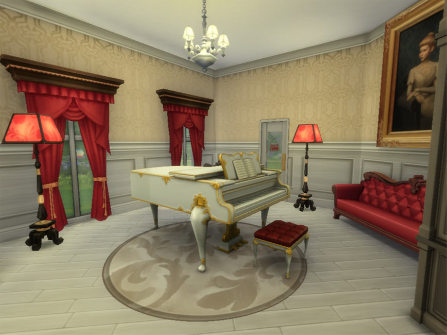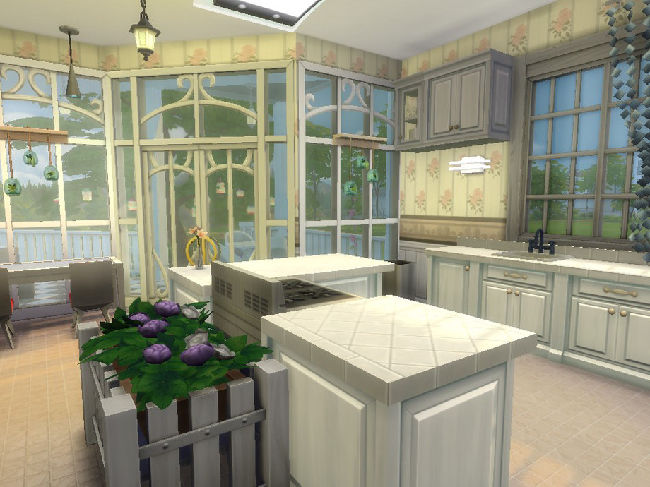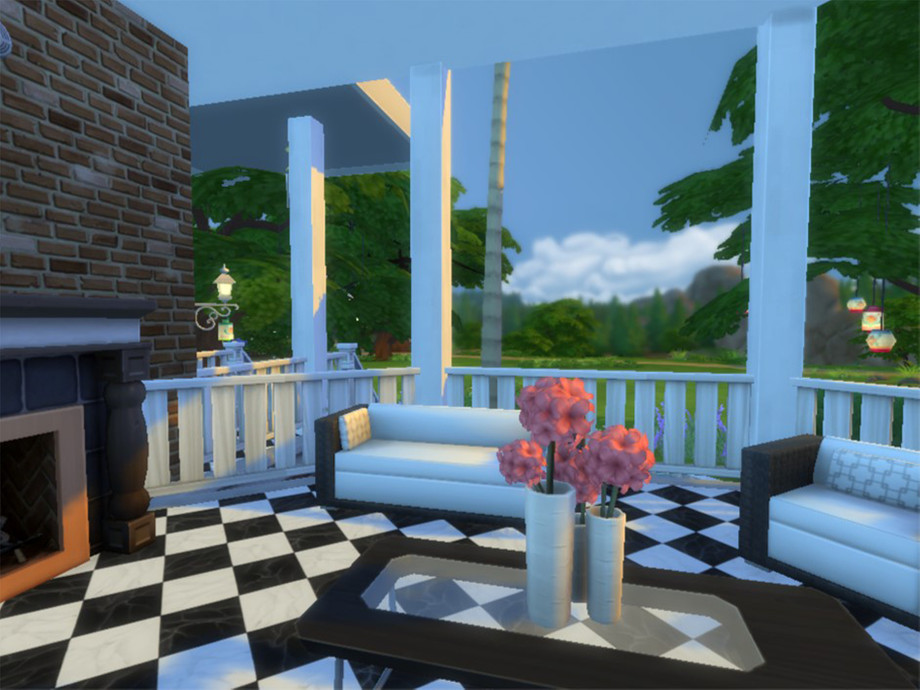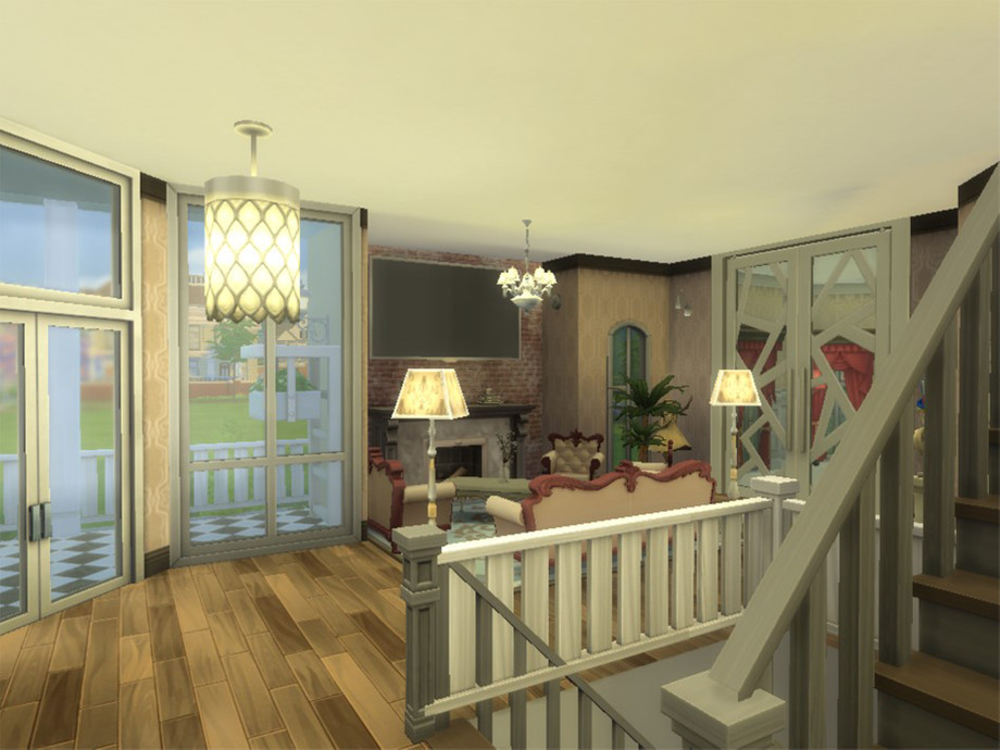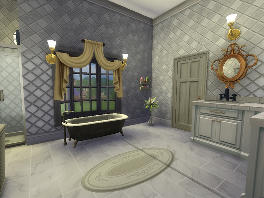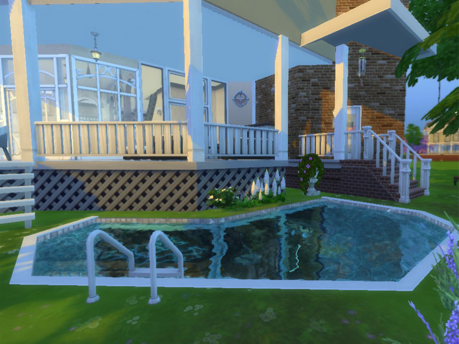 This is very showy mansion. This mansion for big family. There are four balcony for fresh air, fun etc. Kitchen is very spacious, mmm! This mansion has a steamy sauna for your tired sims! And this mansion has the very confortable basement. I believe your sims will fall in love with this mansion!