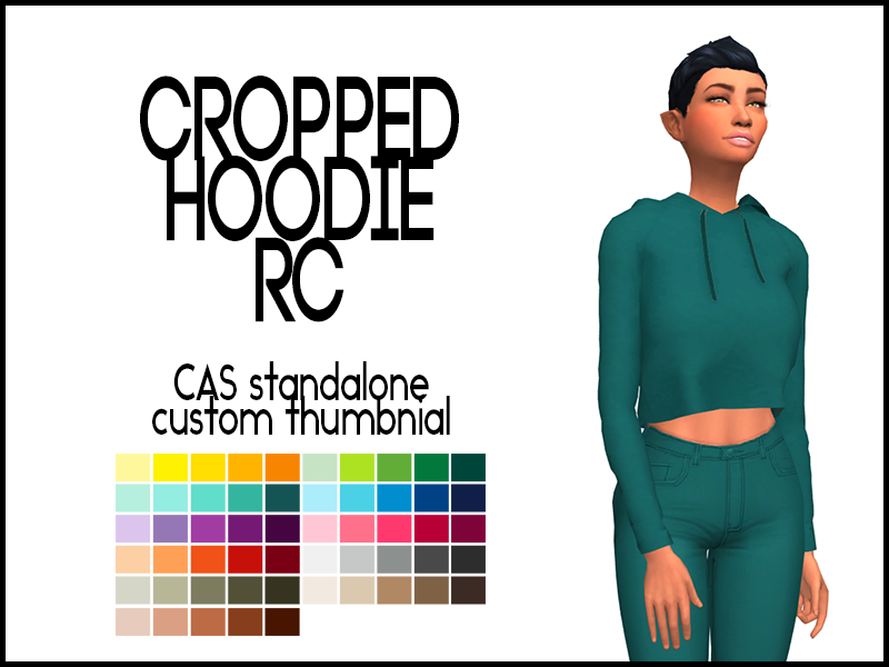 Cropped Hoodie recolored in 55 colors. Custom thumbnail. CAS standalone. Disallowed for random.