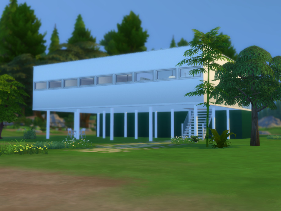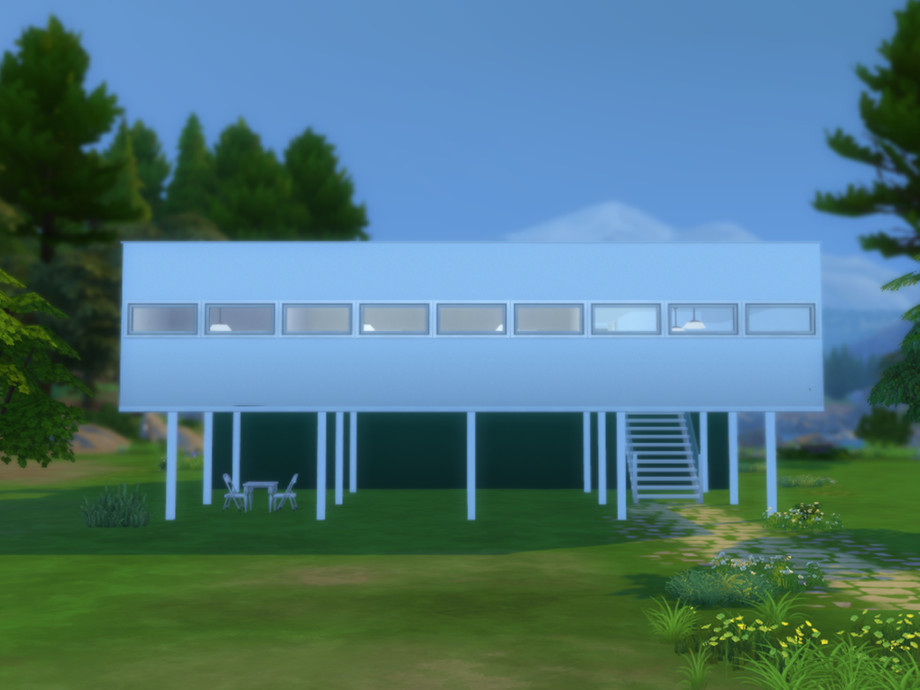 A modern small house, inspired by Villa Savoye from the architect Le Corbusier. It's a residential lot designed to be a rent house to spend the day at forest (Outdoor Retreat), up to 8 sims. Includes an infinity edge pool. Just $483 per day.