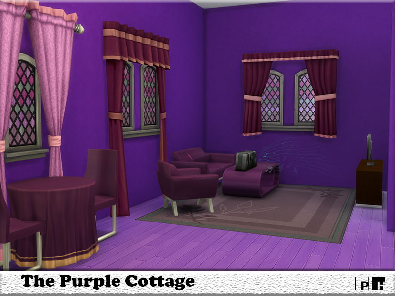 This little purple cottage is perfect for the independent Sim or just starting out in their Sim lives on their own. Its purple inside and out and the pretty flowers make this little cottage an perfect addition to your Simming world. The one floor has Bathroom, Bedroom and living kitchen area all as purple as the eye can see. Was created in Willow Creek. Enjoy the purple :-)