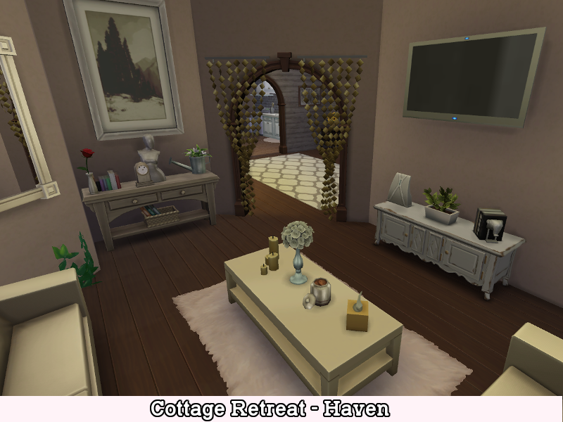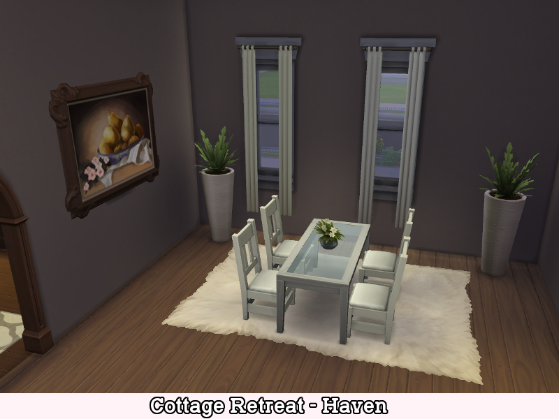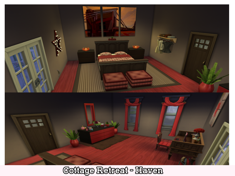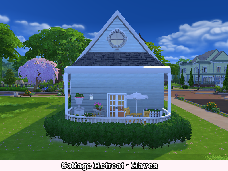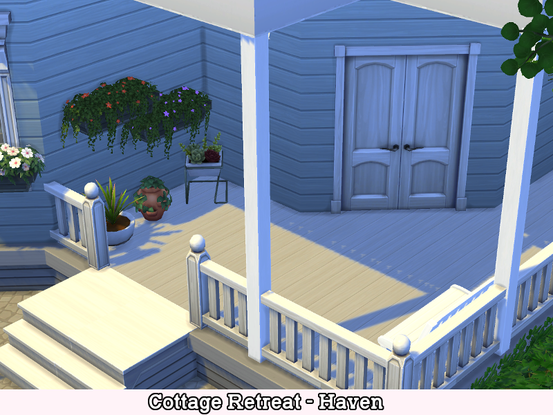This cozy cottage without the use of CC is great for a single Sim or couple. You can sit either on the front porch to enjoy the view, or on the back porch for a little drink between the flowers.