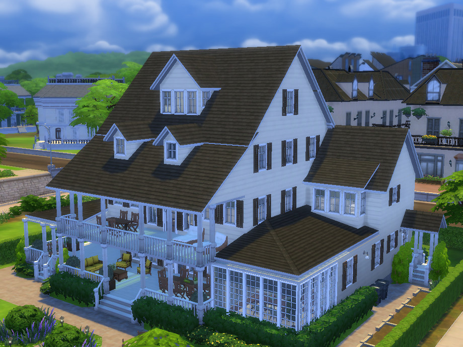 Captain's Watch is a spacious traditional family home with a cosy living and dining room, a spacious kitchen with breakfast nook, a powder room, a separate bar, a butler's pantry and a laundry room. There is also a study (which can be converted into a bedroom) with en-suite bathroom. Upstairs is a master suite with TV nook, study area, two walk-in closet and an en-suite bathroom and a spacious terrace, two bedrooms with each an en-suite bathroom and closet. The third floor has a spacious crafts room, a bunk room (to be decorated), a kitchenette and a storage room. The attic has two extra rooms of which one is decorated as a fitness. Outside is a spacious garden with swimming pool, large porches and room to do some gardening. This is a remake of my Sims 3 house: http://www.thesimsresource.com/downloads/1238522