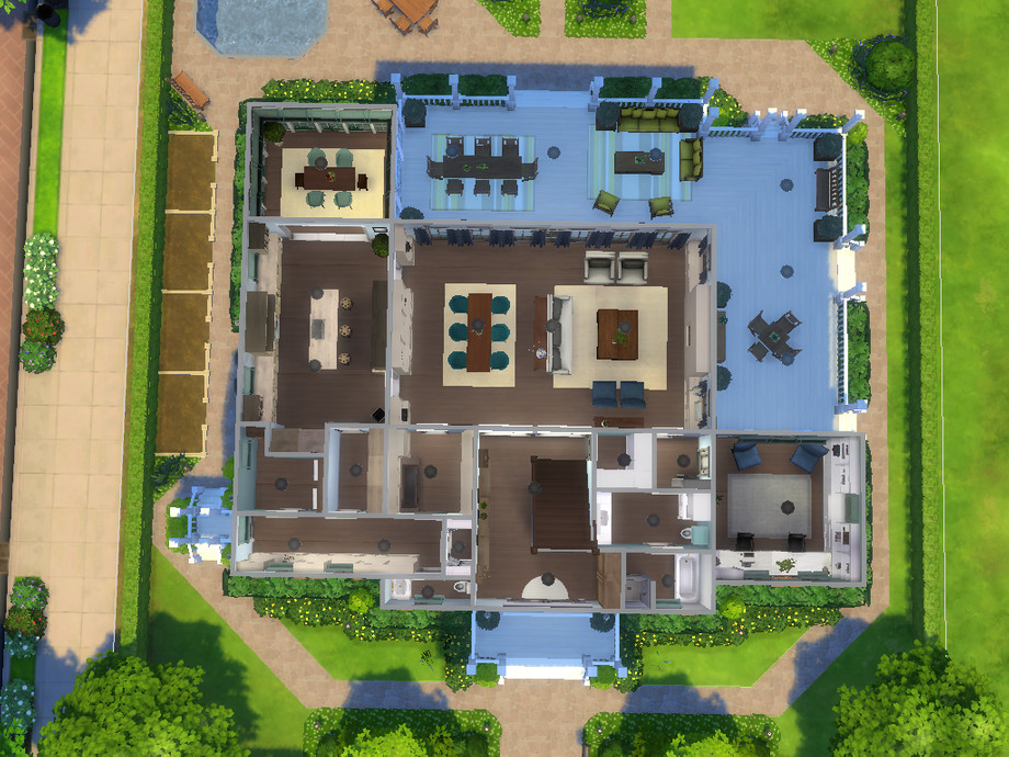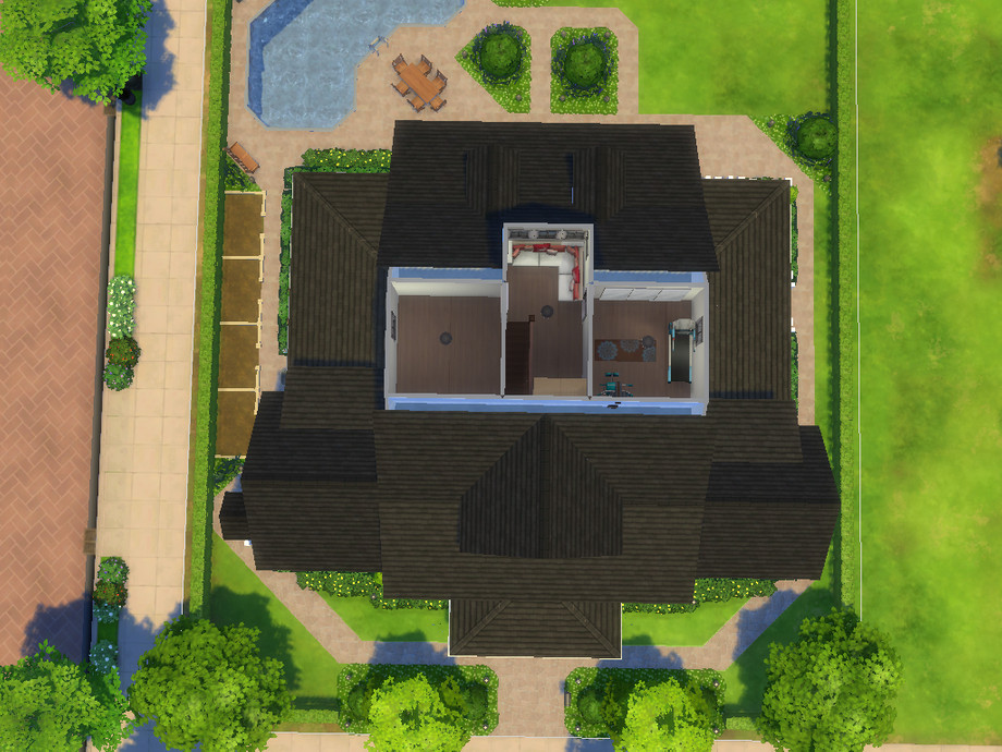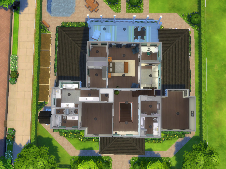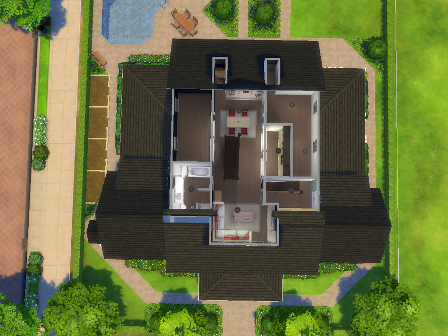 Captain's Watch is a spacious traditional family home with a cosy living and dining room, a spacious kitchen with breakfast nook, a powder room, a separate bar, a butler's pantry and a laundry room. There is also a study (which can be converted into a bedroom) with en-suite bathroom. Upstairs is a master suite with TV nook, study area, two walk-in closet and an en-suite bathroom and a spacious terrace, two bedrooms with each an en-suite bathroom and closet. The third floor has a spacious crafts room, a bunk room (to be decorated), a kitchenette and a storage room. The attic has two extra rooms of which one is decorated as a fitness. Outside is a spacious garden with swimming pool, large porches and room to do some gardening. This is a remake of my Sims 3 house: http://www.thesimsresource.com/downloads/1238522